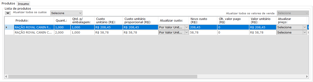 *Em produtos bonificados ou com valor pago diferente dos que são apresentados na nota, você poderá editar para o custo real pago. Porém deve considerar que o custo sempre será diferente de zero, pois mesmo recebendo brindes, a estocagem deste produto tem um valor de custo.