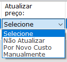 No campo a seguir, você pode atualizar o valor de custo dos produtos no sistema, usando o seletor das seguintes opções: